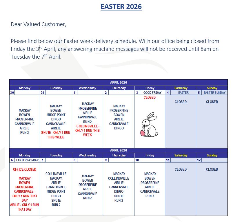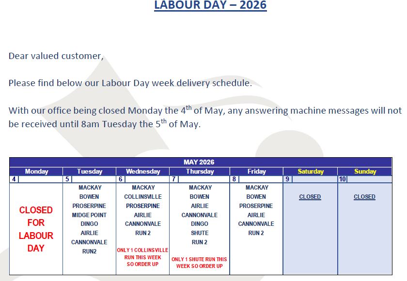 We offer delivery direct to your business for the local Airlie Beach / Cannonvale areas 5 days a week, as well as deliveries to outer areas of the Whitsundays on specific days Monday – Friday.